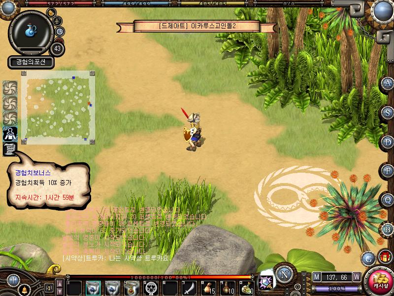 거기다가 신입생 캐릭터라서 경험치 보너스 10% 포션도 갖고 있는 상태..